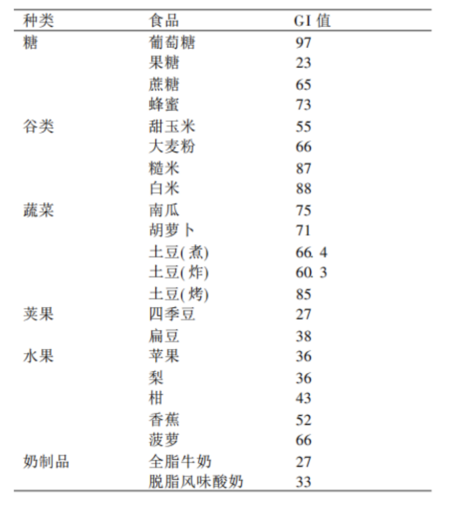 數(shù)據(jù)來源:趙恕,張舒雅.食物血糖生成指數(shù)與其健康意義[J]. 中國微生態(tài)學雜志, 2003(04):58+66.