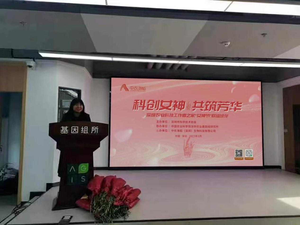 活動現(xiàn)場美好而隆重,處處洋溢著祥和溫馨的氣氛。來自深圳農業(yè)基因組所的女性科技工作者代表向大家致以節(jié)日的問候。并講述了在科創(chuàng)工作的動人故事,獲得在場女性的一致共鳴與掌聲。