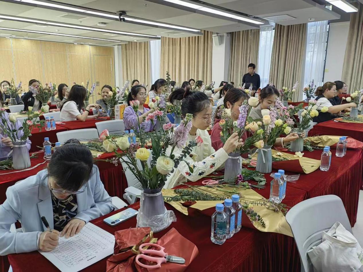 活動還組織了別開生面的插花活動,主辦方邀請了專業(yè)的花藝老師,采用理論與實踐相結合的方式,系統(tǒng)講解了插花藝術的美學原理、不同花卉代表的寓意,圍繞選取插花材料、方法技巧、造型樣式與色彩搭配等內容現(xiàn)場進行了插花技巧演示。在老師的精心指點下,大家結合花材的特點從取材、剪葉、構圖開始,根據(jù)自己的審美,親手制作出自己創(chuàng)作的的花藝藝術作品。